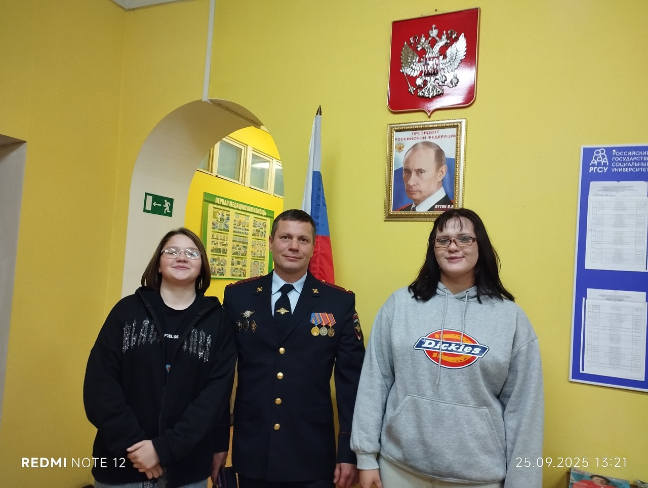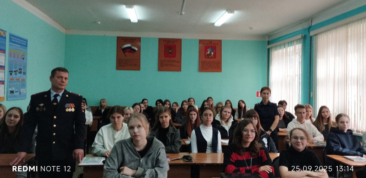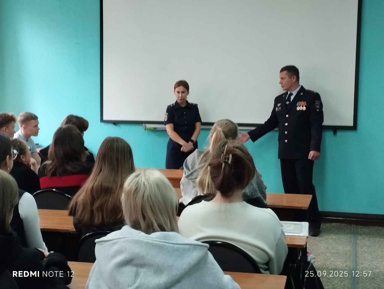 В филиале прошла встреча студентов специальности «Юриспруденция» с подполковником полиции А.В. Ржавиным и майором полиции Е.В. Захаровой‍.